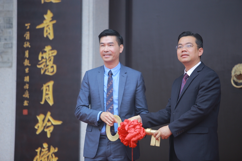 At the opening ceremony of the garden, He Jianfeng handed the key to Wang Congxi, the alcalde of Beijiao, on behalf of He Garden, which marks the completion of the construction of the park and the official transfer of He foundation to the government.