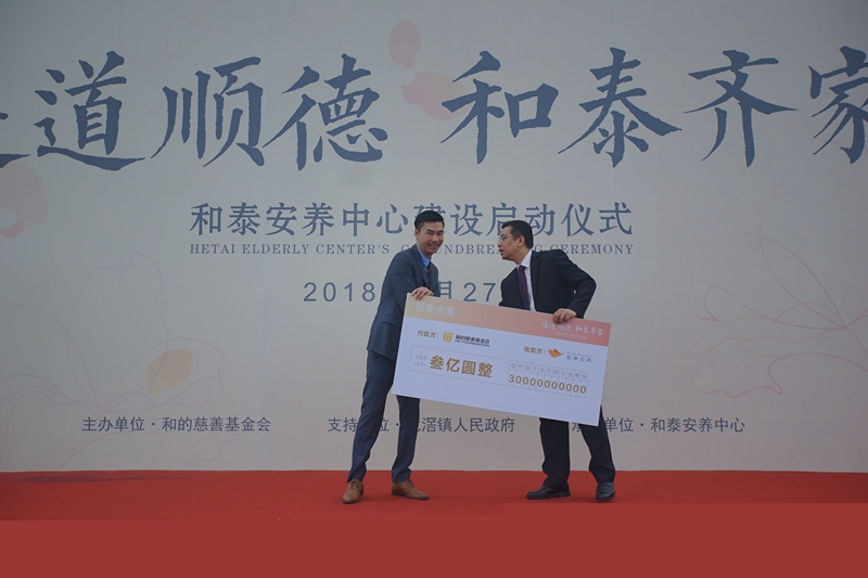 At that day, He Foundation announced a one-off donation of 300 million yuan to set up Hetai Old-age Care Center project. Then, the guests attended the ground-breaking ceremony.