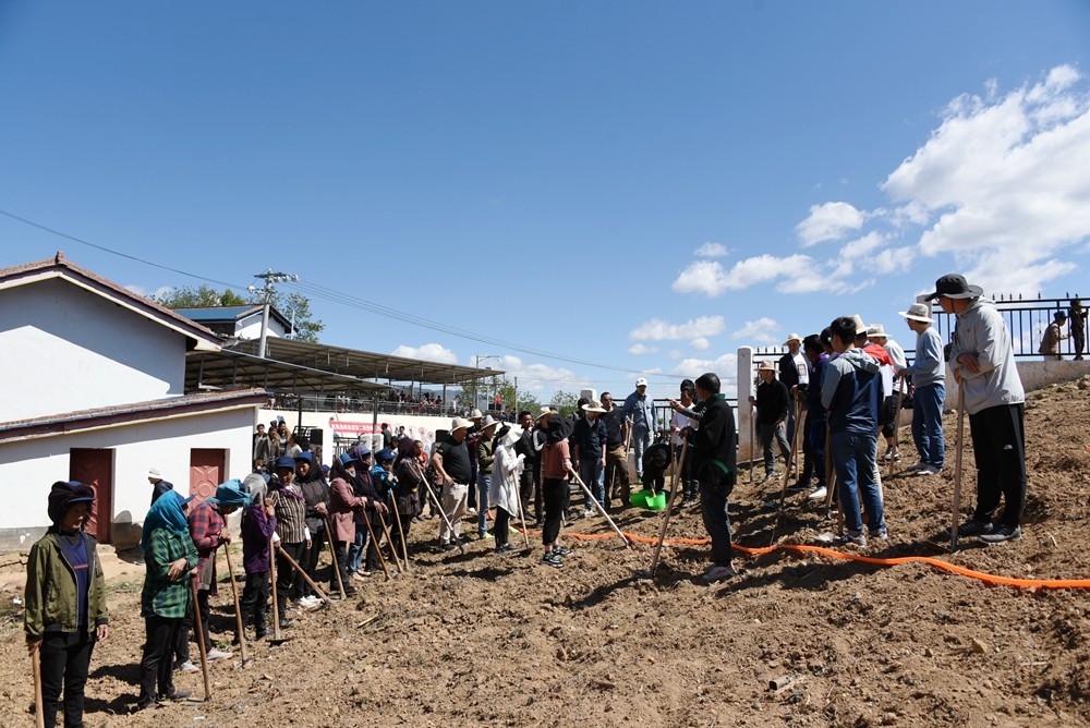 為推動養殖產業振興,促進鄉村可持續發展,登峰班全體學員為拐樂村養殖合作社捐贈了運營資金。在種植員的帶領下,學員們與農戶一起種植牧草。